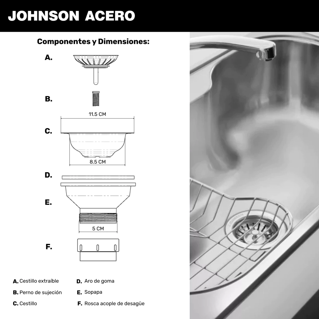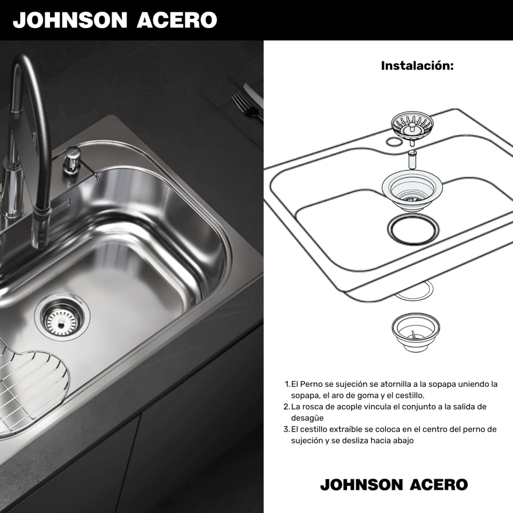 Esta sopapa es compatible con una amplia gama de modelos de piletas de cocina Johnson, tanto simples, dobles como triples.